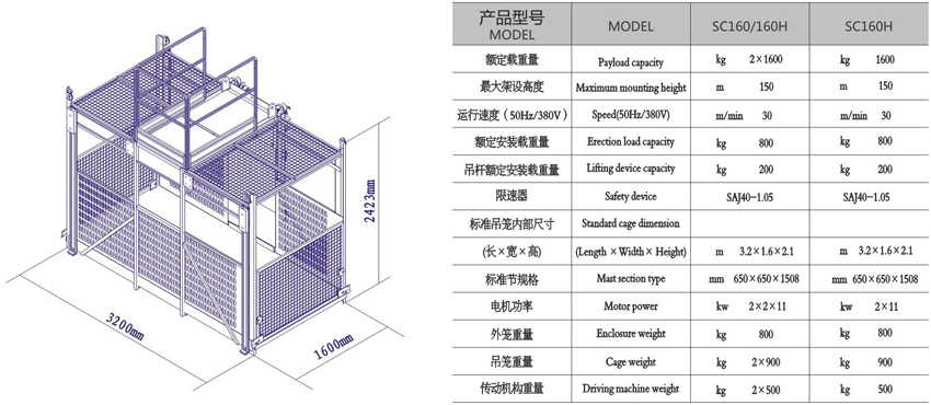 SC160/160H、SC160H系列施工升降机